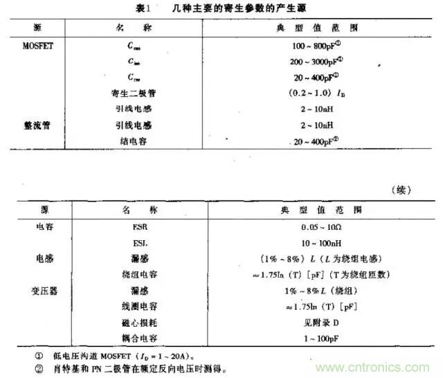 開關電源內的主要寄生參數概述