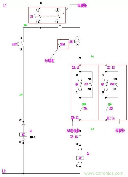 注:本原理圖是Q1斷路器的控制圖,Q2、Q3的控制圖與它一樣。