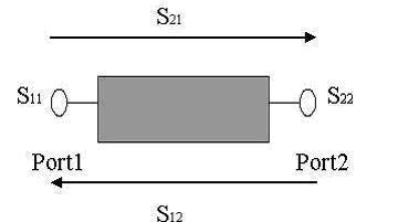二端口網(wǎng)絡(luò)有四個(gè)S參數(shù),Sij代表的意思是能量從j口注入,在i口測得的能量,如S11定義為從Port1口反射的能量與輸入能量比值的平方根,也經(jīng)常被簡化為等效反射電壓和等效入射電壓的比值,各參數(shù)的物理含義和特殊網(wǎng)絡(luò)的特性如下: