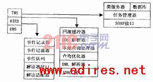 Savant軟件是處理從一個(gè)或多個(gè)解讀器獲得的標(biāo)簽或傳感器數(shù)據(jù)(事件數(shù)據(jù))流的“中間件”,是一種企業(yè)通用的數(shù)據(jù)管理架構(gòu),安裝在等級(jí)式、分布式的服務(wù)器上。本系統(tǒng)的Savant有三種數(shù)據(jù)來(lái)源,可以按傳統(tǒng)的方式從閱讀器而來(lái),可以接受傳感器節(jié)點(diǎn)的信息,也可以接收超級(jí)RFID主動(dòng)發(fā)出的信息?;赟avant的樹(shù)型等級(jí)結(jié)構(gòu),并根據(jù)其分類(lèi),定義了一種統(tǒng)一的層次化的Savant體系架構(gòu)。依據(jù)Auto-ID標(biāo)準(zhǔn)委員會(huì)的定義,Savant應(yīng)該包括三個(gè)必需的標(biāo)準(zhǔn)模塊:事件管理系統(tǒng)(EMS)、實(shí)時(shí)內(nèi)存數(shù)據(jù)結(jié)構(gòu)(RIED)和任務(wù)管理系統(tǒng)(TMS)。其它一些可選標(biāo)準(zhǔn)程序模塊可以根據(jù)用戶(hù)定義。圖3是Savant的體系結(jié)構(gòu)。