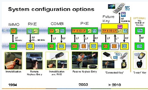 2003,NXP推出了無(wú)鑰匙系統(tǒng)(PKE或稱PEPS),徹底改變了汽車安防應(yīng)用領(lǐng)域的發(fā)展前景,給用戶帶來(lái)了全新舒適與便利的體驗(yàn):車主在整個(gè)駕車過(guò)程中都完全不需要使用鑰匙,只需要隨身攜帶。當(dāng)車主進(jìn)入車子附近的有效范圍時(shí),車子會(huì)自動(dòng)檢測(cè)鑰匙并進(jìn)行身份識(shí)別,如成功會(huì)相應(yīng)的打開(kāi)車門(mén)或后備箱;當(dāng)車主進(jìn)入車內(nèi),只需要按引擎啟動(dòng)按鈕,車子會(huì)自動(dòng)檢測(cè)鑰匙的位置,判斷鑰匙是否在車內(nèi),是否在主駕位置,如成功則發(fā)動(dòng)引擎。千萬(wàn)不要小瞧這個(gè)看似不起眼的改變,它在簡(jiǎn)化你的生活方面發(fā)揮著重大作用。無(wú)鑰匙系統(tǒng)絕不僅僅是帶來(lái)了舒適與方便,其在安全性方面也有了本質(zhì)的提高,通過(guò)低頻和射頻的雙向通訊,汽車與鑰匙之間可以完成復(fù)雜的雙向身份認(rèn)證,在安全性方面與引擎防盜類似,要遠(yuǎn)好于傳統(tǒng)的遙控鑰匙。從2003年少量高端車型成功量產(chǎn)無(wú)鑰匙系統(tǒng)開(kāi)始,全球市場(chǎng)用了兩到三年的時(shí)間推廣普及這一技術(shù),目前,幾乎全球每一個(gè)主流車廠都有應(yīng)用NXP的無(wú)鑰匙產(chǎn)品,覆蓋中高端的車型,甚至是低端車型。