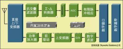 高動(dòng)態(tài)范圍A/D靠一個(gè)高速采樣時(shí)鐘提供時(shí)鐘信號(hào),所以在設(shè)計(jì)和布局階段必須仔細(xì)考慮基底噪音及RF前端的耦合噪聲。來(lái)自RF采樣時(shí)鐘諧波的干擾如果處在通道帶寬之內(nèi)的話(huà),可能會(huì)降低接收器的性能。一旦信號(hào)實(shí)現(xiàn)了數(shù)字化,一個(gè)公共的硬件平臺(tái)可用來(lái)提取期望信號(hào),同時(shí)阻止干擾信號(hào)。幾項(xiàng)射頻功能,如直流偏移抵消、自動(dòng)增益控制和頻率偏移校正等,在實(shí)際的數(shù)據(jù)解調(diào)之前可以作為射頻的一部分被執(zhí)行。這減輕了對(duì)DSP指令運(yùn)算速度方面的要求,同時(shí)使無(wú)線(xiàn)電控制方式更加靈活。