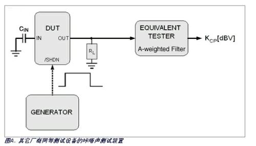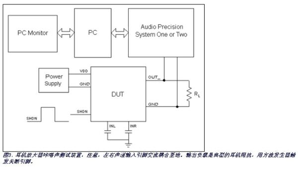 Maxim采用了Audio Precision的系統(tǒng)1和系統(tǒng)2 (推薦)音頻分析儀測(cè)量咔嗒聲(圖3),也可以采用其它廠商類似測(cè)試設(shè)備。所推薦的指標(biāo)KCP能夠客觀衡量音頻放大器的咔嗒聲。