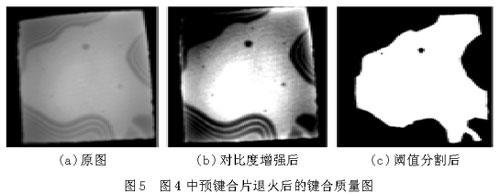 該檢測儀更具有靈活性和實用性,不但可用于同質(zhì)材料鍵合片的質(zhì)量檢測,還可用于異質(zhì)材料鍵合片的檢測,用于篩選適合下一步工藝研究的合適鍵合片等。同時,該檢測儀結(jié)合到鍵合裝置中,可以實時觀測鍵合過程中鍵合的動態(tài)圖像,觀察鍵合波,實時指導(dǎo)鍵合工藝。但目前已實現(xiàn)的軟件功能還很簡單,只能進(jìn)行鍵合質(zhì)量的初步評估。要獲得鍵合片的更多信息,需要添加軟件功能,這是該系統(tǒng)的不足之處和值得改進(jìn)的地方。