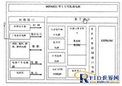 非接觸式IC卡又稱射頻卡,是世界上最近幾年發(fā)展起來的一項新技術(shù),它成功地將射頻識別技術(shù)和IC卡技術(shù)結(jié)合起來,解決了無源(卡中無電源)和免接觸這一難題。MIFARE 1型射頻卡內(nèi)部的功能模塊及原理見下圖1