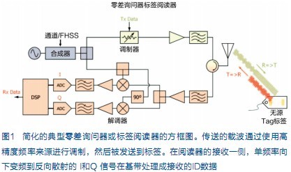 最簡單的RFID系統(tǒng)由一個標簽(可以是無源標簽)和一個閱讀器組成。從結構上看,無源標簽的讀取與傳統(tǒng)全雙工數(shù)據(jù)鏈路略有不同。與傳統(tǒng)有源數(shù)據(jù)鏈路不同的是,無源標簽依賴其收到的RF能量為自身供電。無源標簽同樣不會生成自己的傳送載波信號,而是調制詢問器發(fā)送到標簽的部分能量,這一過程稱為反向散射。