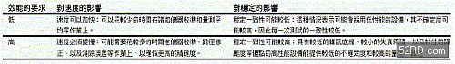 表1:以效能為首要的考量條件時(shí),最重要的相互影響因素是效能和速度。