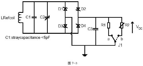 4.Reference device:圖7為兩種測試標(biāo)準(zhǔn)線路和一組天線coil,此referencedevice用于測試DUT的標(biāo)準(zhǔn)件。其中又包含了兩組測試電路,圖7-2為調(diào)變測試電路,圖7-3為電源測試電路。