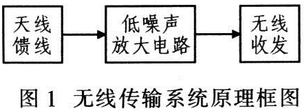 圖1為無線傳輸系統(tǒng)原理框圖。接收端的功率放大電路模塊由于信道具有衰減特性,經(jīng)遠(yuǎn)距離傳輸?shù)竭_(dá)接收端的射頻信號電平多是μV數(shù)量級,因此需放大微弱的射頻信號。同時,信道中還存許多干擾信號,即噪聲,所以該系統(tǒng)設(shè)計應(yīng)采用低噪聲的射頻功率放大電路?! ?/p>