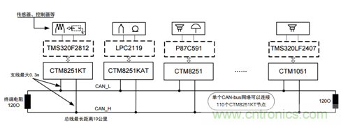 與485類似,CAN-bus也是以總線的方式進(jìn)行通信的,所有的CAN節(jié)點都掛在一對差分線上。但CAN總線中的節(jié)點不存在主從的概念,當(dāng)節(jié)點有數(shù)據(jù)需要上傳時可自主、即時發(fā)送,先進(jìn)的仲裁機制保證數(shù)據(jù)不會沖突。