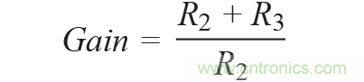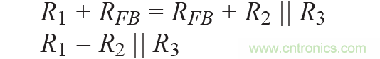 所有電阻(R1至R3)應(yīng)具有相同的電阻溫度系數(shù)(TCR),但不一定要與DAC內(nèi)部電阻的TCR相同。電阻R1用于根據(jù)R2和R3及以下關(guān)系調(diào)整DAC內(nèi)部電阻(RFB):