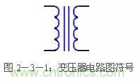 通常直流穩(wěn)壓電源使用電源變壓器來改變輸入到后級(jí)電路的電壓。電源變壓器由初級(jí)繞組、次級(jí)繞組和鐵芯組成。初級(jí)繞組用來輸入電源交流電壓,次級(jí)繞組輸出所需要的交流電壓。通俗的說,電源變壓器是一種電→磁→電轉(zhuǎn)換器件。即初級(jí)的交流電轉(zhuǎn)化成鐵芯的閉合交變磁場(chǎng),磁場(chǎng)的磁力線切割次級(jí)線圈產(chǎn)生交變電動(dòng)勢(shì)。次級(jí)接上負(fù)載時(shí),電路閉合,次級(jí)電路有交變電流通過。變壓器的電路圖符號(hào)見圖2-3-1。