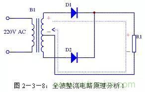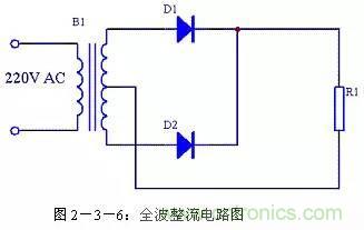 全波整流電路每個(gè)整流二極管上流過的電流只是負(fù)載電流的一半,比半波整流小一倍。