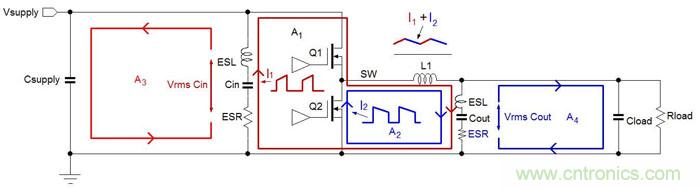 Buck架構(gòu)DC/DC轉(zhuǎn)換器中存在兩個(gè)電流發(fā)生劇烈變化的主回路 :