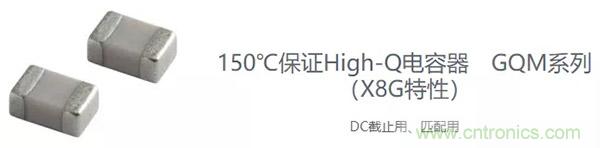 村田制作所的High-Q電容器,除傳統(tǒng)125℃保證品(C0G特性),又將150℃保證品(X8G特性)新增到產(chǎn)品陣容。通過降低DC截止用、匹配用電容器周邊溫度的制約,可提高設(shè)計自由度。
