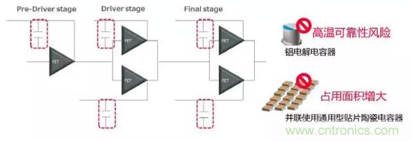 為使PA動作穩(wěn)定,使用環(huán)境變化對于選擇大靜電容量所需要的Vdrain的晶體管用電容器產(chǎn)生很大的影響。