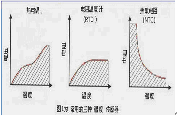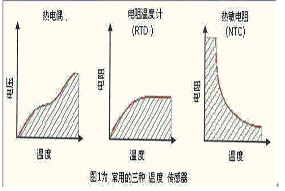 溫度是測量頻度最高的物理參數(shù),并且可采用各種各樣的傳感器來進行測量。所有這些傳感器均通過檢測某種物理特性的變化來推斷溫度。最常用的三種溫度傳感器是熱電偶、電阻溫度計(rtd)和ntc熱敏電阻,見圖1所示。值此先作介紹。