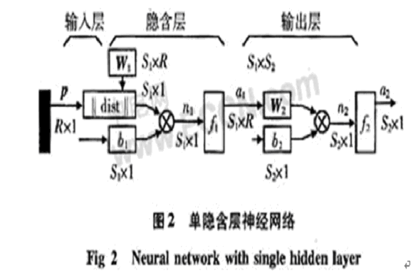 其中,p為輸入矢量,R為輸入矢量維數(shù),S1為隱含層神經(jīng)元個(gè)數(shù),S2為輸出層神經(jīng)元個(gè)數(shù),W1為隱含層神經(jīng)元權(quán)值矩陣,W2為輸出層權(quán)值矩陣,b1為隱含層神經(jīng)元閥值,b2為隱含層神經(jīng)元閥值,n1為隱含層輸入節(jié)點(diǎn),n2為輸出層節(jié)點(diǎn)。f1為S型函數(shù),f2為purelin型函數(shù)。神經(jīng)網(wǎng)絡(luò)算法是用于前饋多層網(wǎng)絡(luò)的學(xué)習(xí)算法。如果輸出不能得到期望的輸出,則轉(zhuǎn)入后向傳播。通過(guò)誤差的后向傳播調(diào)整各層之間的權(quán)系數(shù)。反復(fù)輸入樣本序列,直至權(quán)系數(shù)不在改變?yōu)橹?,輸出誤差在規(guī)定的范圍之內(nèi)。算法采用如下改進(jìn):1)采用模擬退火法以克服局部最?。?)用奇函數(shù)作激勵(lì)函數(shù)和傳播過(guò)程中采用新誤差傳播因子完善該算法收斂性問(wèn)題。