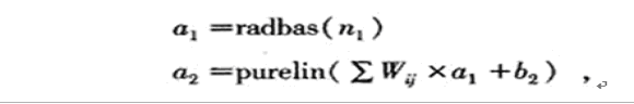 鑒于BP神經(jīng)網(wǎng)絡(luò)訓(xùn)練過(guò)程需要對(duì)所有權(quán)值和閥值進(jìn)行修正,是一種全局逼近神經(jīng)網(wǎng)絡(luò),但訓(xùn)練速度較慢,不適用實(shí)時(shí)性較強(qiáng)場(chǎng)合,故采取了局部逼近網(wǎng)絡(luò)——徑向基網(wǎng)絡(luò)。算法訓(xùn)練關(guān)系式如下: