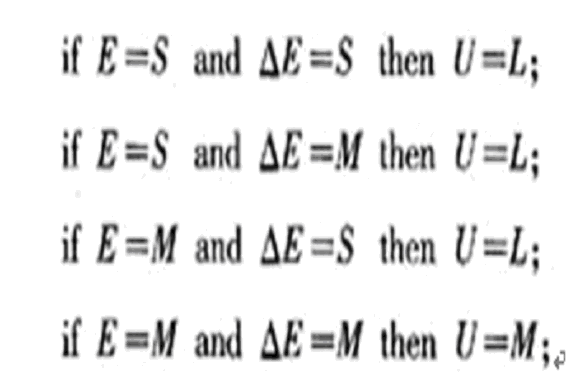 橫行元素表示E的模糊量,豎行表示△E的模糊量,兩者交叉為控制量U的模糊量。根據(jù)表中數(shù)據(jù),可知共有3×3種推理語(yǔ)句,采用推理法將條件語(yǔ)句表簡(jiǎn)化得出以下4條語(yǔ)句: