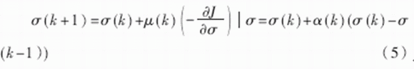 其中,μ(k)為學(xué)習(xí)率,α(k)為動(dòng)量因子,也稱為遺忘因子,又稱動(dòng)量項(xiàng)或阻尼項(xiàng)。將其稱為遺忘因子可從對(duì)于新舊信息的學(xué)習(xí)與遺忘的角度來(lái)理解;稱為動(dòng)量項(xiàng)或阻尼項(xiàng)是因?yàn)樵诰W(wǎng)絡(luò)的學(xué)習(xí)訓(xùn)練中,此項(xiàng)相當(dāng)于阻尼力,當(dāng)訓(xùn)練誤差迅速增大時(shí),它使網(wǎng)絡(luò)發(fā)散得越來(lái)越慢??傊咕W(wǎng)絡(luò)的變化趨于穩(wěn)定,有利于網(wǎng)絡(luò)的收斂。