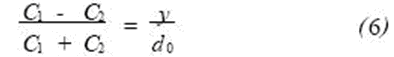 傳感器殼體2的位移y與C1,C2關系為: