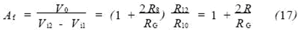 移用放大器從電路結構可知,這是一種同相并聯(lián)差動放大器,其對稱性結構使整個放大器具有很高的共模抑制能力,特別是適用于長距離測量。其數(shù)學模型為: