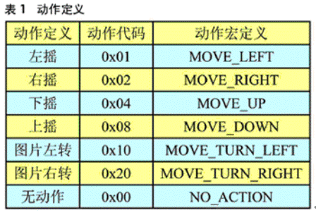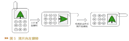 系統(tǒng)設計了六種動作,他們分別是左搖、右搖、下?lián)u、上搖、圖片左轉(zhuǎn)、圖片右轉(zhuǎn)。圖4中的圖形象地說明了其中的兩個動作,其它的動作與此類似。