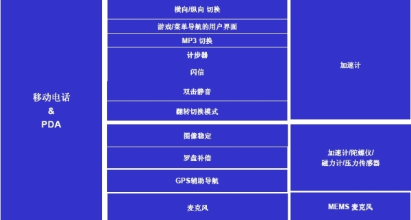 圖1:MEMS傳感器在移動電話和PDA中的應(yīng)用