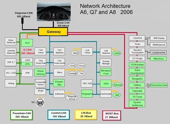 例如,可能會通過診斷用CAN總線來訪問每個單獨的ECU、詢問其狀態(tài)、讀取錯誤代碼,甚至刷新程序固件。如今,出于成本考慮,許多應(yīng)用中常常會共享傳感器。這意味著一個傳感器模塊的測量值將被幾個ECU處理。