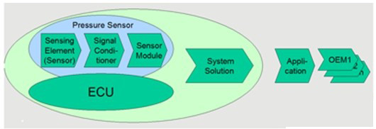 目前實現(xiàn)上述功能需要20~50個電子控制單元(ECU),所用到的傳感器差不多有70~150個。這些傳感器負責測量的環(huán)境數(shù)據(jù)范圍很廣,有壓力、溫度、流量、速度、加速度以及角度等。它們將測量值送到ECU進行引擎和環(huán)境控制、安全氣囊觸發(fā),從而提升舒適度和安全性。像ABS、電子穩(wěn)定程序/控制(ESP/ESC),以及剎車輔助系統(tǒng)等,都要依賴傳感器輸入。