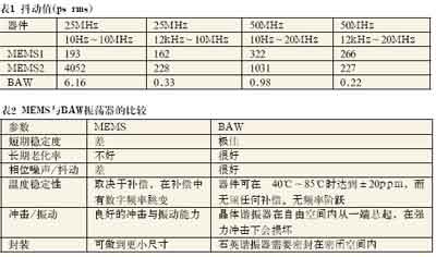 該研究采用已有測量技術(shù)對商用BAW與MEMS振蕩器的多種不同電特性進行了比較,在此基礎(chǔ)上進行了部分討論,并在表2中做了相應(yīng)總結(jié)。結(jié)果表明,兩種技術(shù)是不可互換的。頻率偏差、MEMS振蕩器的低Q值與數(shù)字溫度補償都造成了許多應(yīng)用中不可接受的頻率波動。