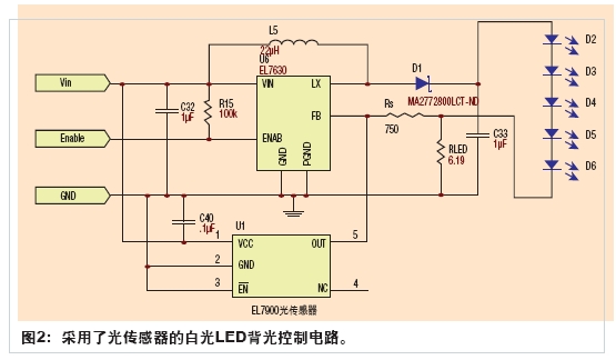 這些要求如何在一個(gè)實(shí)際的應(yīng)用中實(shí)現(xiàn)呢?讓我們看一看環(huán)境光傳感器是如何在一個(gè)自動(dòng)的白光LED背光控制電路中工作的,在汽車背光應(yīng)用中通常可以看到這種控制電路。
