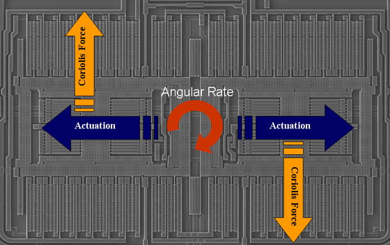 ST研制的微機械陀螺儀傳感器沿用了ST成功的制造技術(shù),這項技術(shù)已為ST制造了6億多顆加速傳感器,選擇成功的技術(shù)可為客戶提供最先進的質(zhì)量可靠的產(chǎn)品,而且可直接用于最終應(yīng)用。因為ST選用了音叉方法設(shè)計陀螺儀,其差分特性使系統(tǒng)本身對作用在傳感器上的無用線性加速度和雜亂振動的敏感度低于市場上現(xiàn)有的其它類型陀螺儀。當(dāng)這些無用的信號被施加到陀螺儀上時,兩個質(zhì)點就會沿相同方向位移,在一個差分測量后,最終的電容變化將視為無效。