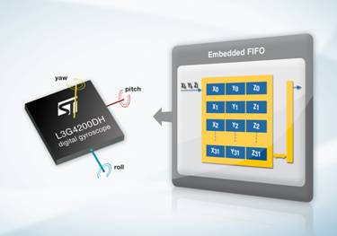 全球最大的消費電子和便攜設備MEMS傳感器供應商意法半導體進一步擴大運動傳感器產(chǎn)品陣容,推出一款高性能的三軸數(shù)字輸出陀螺儀。新產(chǎn)品內嵌一個FIFO(先入先出)存儲器模塊,可實現(xiàn)智能化程度更高的電源管理。