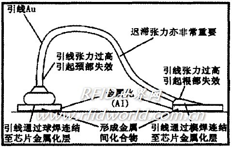 IC卡組裝工藝中,因鍵合引起的失效也是影響IC卡質(zhì)量和可靠性的重要因素之一。鍵合失效主要表現(xiàn)為IC卡電學(xué)特征上的不連續(xù),如開路同時(shí)伴有短路、漏電等現(xiàn)象,或出現(xiàn)“輸入高”或者“輸入低”的失效。圖給出了與鍵合相關(guān)的諸多失效機(jī)理。