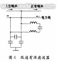 通常,經(jīng)典濾波器用得最多。濾波電路可以由無源元件R、L、C組成,如圖5所示的線路濾波器;也可以包含有源元件(如圖6所示),它的優(yōu)點(diǎn)主要是具有一定的信號(hào)放大和帶負(fù)載能力。濾波電路從功能上又可分為四類:低通(LP)、高通(HP)、帶通(BP)、帶阻(BS)濾波器。每一種又有模擬(AF)與數(shù)字(DF)濾波器兩種形式。由于傳感器信號(hào)一般為緩慢變化的信號(hào),故選用低通濾波器抑止高頻噪聲信號(hào)最多。通常如巴特沃斯濾波器、切比雪夫?yàn)V波器、橢圓濾波器等。常用低通濾波電路如圖6所示。