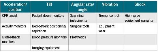 通過一個功耗極低的緊湊器件來精確檢測和測量運(yùn)動的能力,幾乎對任何涉及到運(yùn)動的應(yīng)用都是有價值的,甚至對那些運(yùn)動要求不是很關(guān)鍵的應(yīng)用也是有價值的。表1按運(yùn)動類型列出了一些基本醫(yī)療應(yīng)用。需要解決更多挑戰(zhàn)的更高級應(yīng)用將在稍后討論。