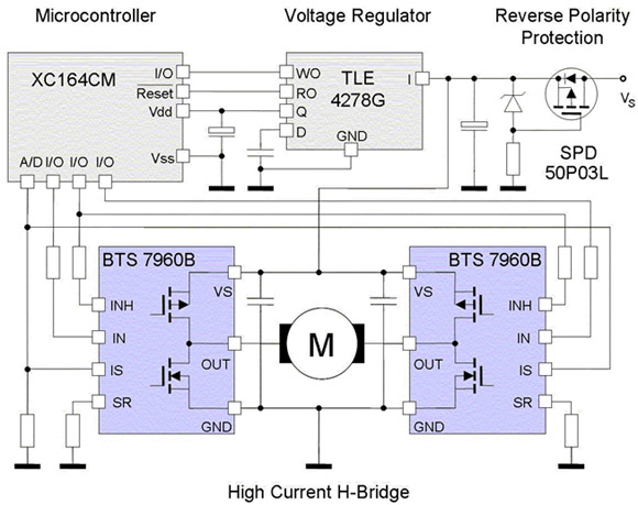 - 采用BTS7960這樣的智能半導(dǎo)體器件