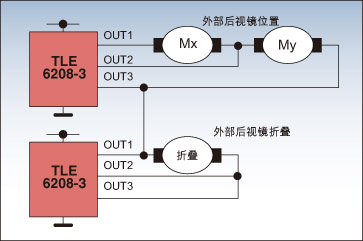 圖4: 采用TLE6208-3的后視鏡電機(jī)驅(qū)動(dòng)的例子。