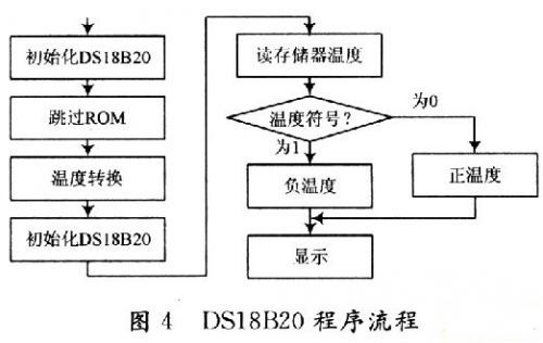 要進行溫度控制,首先要測量所控制目標的溫度值,在本系統(tǒng)中,具體使用數(shù)字溫度傳感器DSl8B20與DSP結(jié)合,并利用CCS編寫程序,本系統(tǒng)開發(fā)平臺為CCS 2.2,前期安裝及芯片設(shè)置在此省略,程序流程如圖4所示。