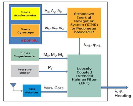 當(dāng)天線沒(méi)有被遮擋時(shí),現(xiàn)代的GPS接收器的絕對(duì)定位精度是3米到20米,這個(gè)參數(shù)不會(huì)在一段時(shí)期后發(fā)生漂移?;贛EMS傳感器的捷聯(lián)式慣性導(dǎo)航系統(tǒng)(SINS) 可在很短的時(shí)間內(nèi)提供精確的定位信息,但是,根據(jù)運(yùn)動(dòng)傳感器的性能,這種導(dǎo)航系統(tǒng)在使用一段時(shí)間后很快就會(huì)發(fā)生精度漂移現(xiàn)象。行人航位推算系統(tǒng)(PDR)是一個(gè)根據(jù)步長(zhǎng)和方位計(jì)算從室內(nèi)已知初始位置開(kāi)始的行走距離的相對(duì)導(dǎo)航系統(tǒng),雖然定位精度不會(huì)隨時(shí)間推移而發(fā)生漂移,但是需要在受磁力干擾的環(huán)境內(nèi)保持航向精度,此外,GPS需要對(duì)步長(zhǎng)進(jìn)行校準(zhǔn),才能達(dá)到可以接受的定位精度。