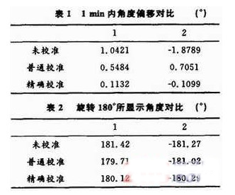 ADIS16365擁有較為完善的數(shù)據(jù)處理方案,經(jīng)測試,使用其內(nèi)部校正功能可以明顯改善系統(tǒng)性能。根據(jù)寫入GLOB_CMD寄存器命令的不同,可以采用不同的處理方法。表1和表2列出了內(nèi)部普通校準(zhǔn)和精確校準(zhǔn)與未校準(zhǔn)數(shù)據(jù)的比較?! ?/p>