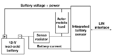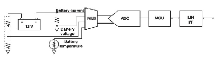電池電壓通過一個直接從電池正極分接出來的阻性衰減器來檢測。為檢測電流,將一個檢測電阻(12V應(yīng)用一般使用100mΩ)放在電池負(fù)極與地之間。在這種配置中,汽車的金屬底盤一般為地,檢測電阻安裝在電池的電流回路中。在其它配置中,電池的負(fù)極是地。對于SoH 計算,還必須檢測電池的溫度?! ?br />