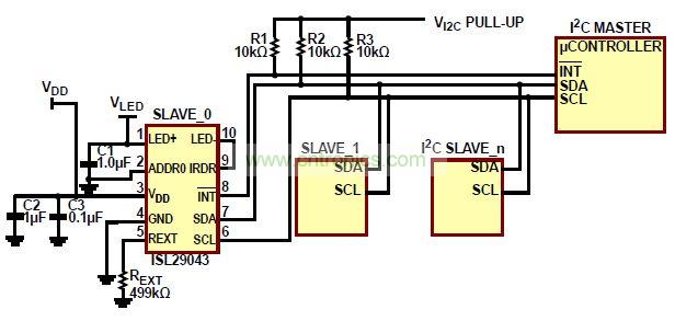 ISL29043工作電壓范圍從2.25V到3.63V,可工作于-40°C至85°C的環(huán)境溫度范圍。