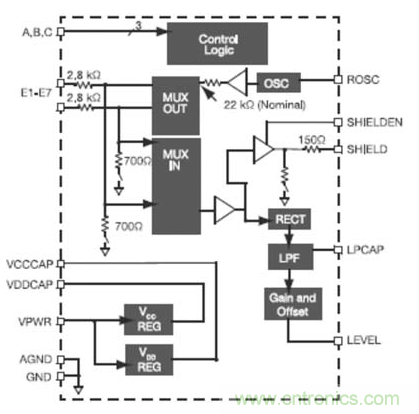 傳統(tǒng)的機(jī)械開關(guān)具有用戶熟悉的靈敏度和觸覺反饋,對(duì)于電容傳感器來(lái)說(shuō),這些參數(shù)也必須加以考慮和優(yōu)化。不同的傳感器可能需要獨(dú)特的靈敏度,這取決于開關(guān)功能或開關(guān)在產(chǎn)品中的物理位置。而且,一套靈敏度設(shè)置不可能適合所有的用戶,因此應(yīng)該允許用戶設(shè)置不同的靈敏度水平,若能通過(guò)靈敏度控制菜單進(jìn)行選擇將是最理想的。例如,AD7142支持這些靈敏性要求,允許一個(gè)單獨(dú)的16位靈敏度控制寄存器為每個(gè)傳感器編程。這些寄存器也可以嵌入到主機(jī)固件中,并在菜單顯示中提供,允許用戶選擇不同的靈敏度水平,以滿足其特殊需求。在用戶沒(méi)有與傳感器接觸期間,如果對(duì)每個(gè)傳感器輸入取樣,則會(huì)白白浪費(fèi)電池電量。為使電池效率最大化,CDC應(yīng)能夠檢測(cè)到用戶停止觸碰傳感器,并自動(dòng)切換到低功耗模式。當(dāng)傳感器被再度觸碰時(shí),IC將自動(dòng)重新進(jìn)入正常工作模式。