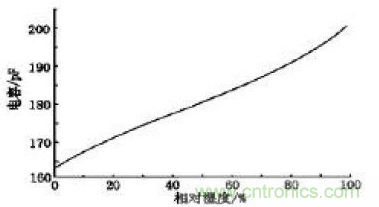 圖1:HS1101濕度-電容響應(yīng)曲線