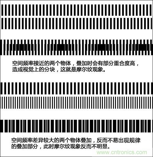 圖3:不同空間頻率物體疊加后的摩爾紋現(xiàn)象
