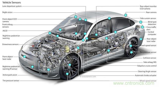 豐田透露過他們的高速道路自動駕駛汽車上有12個(gè)傳感器:1個(gè)藏在內(nèi)后視鏡里的前攝像頭,5個(gè)測量周圍車輛速度的雷達(dá),和6個(gè)探測周圍目標(biāo)位置的激光雷達(dá)5。
