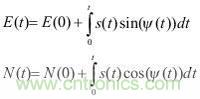 其中,(t)是位移,(t)是航向。在行人步伐間隔期間,假設(shè)速度和航向是常量。考慮到折線法,方程式1可改寫成: